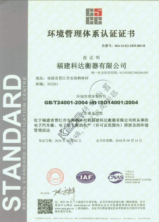 科達地磅通過環(huán)境管理體系認證